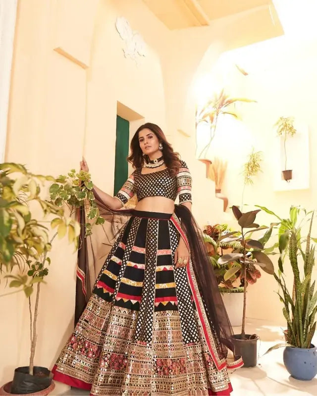 outfit : Chanderi and heavy embroidery raw silk skirt paired with a matching Chanderi blouse and net dupatta. Pure elegance in every stitch.