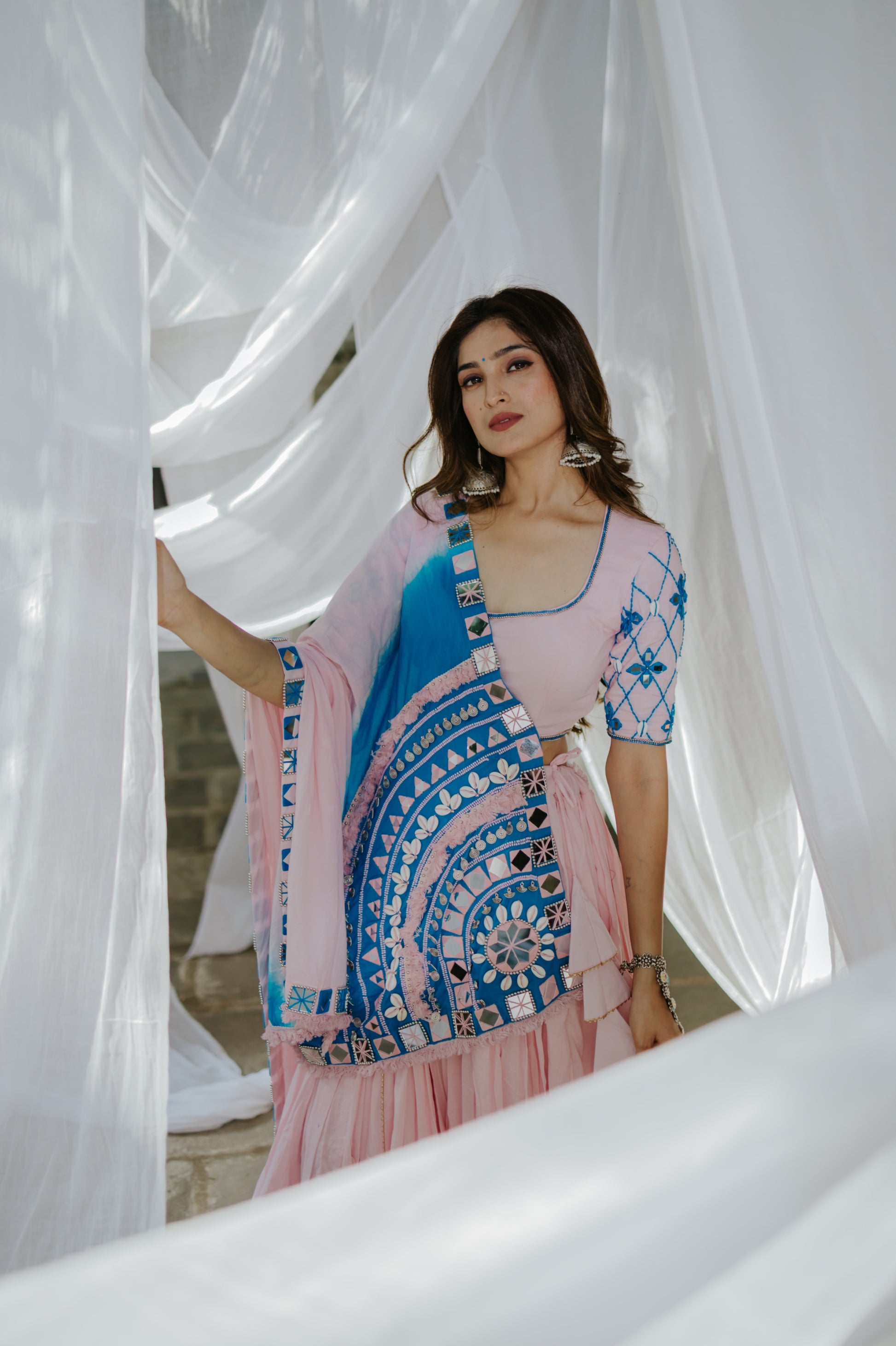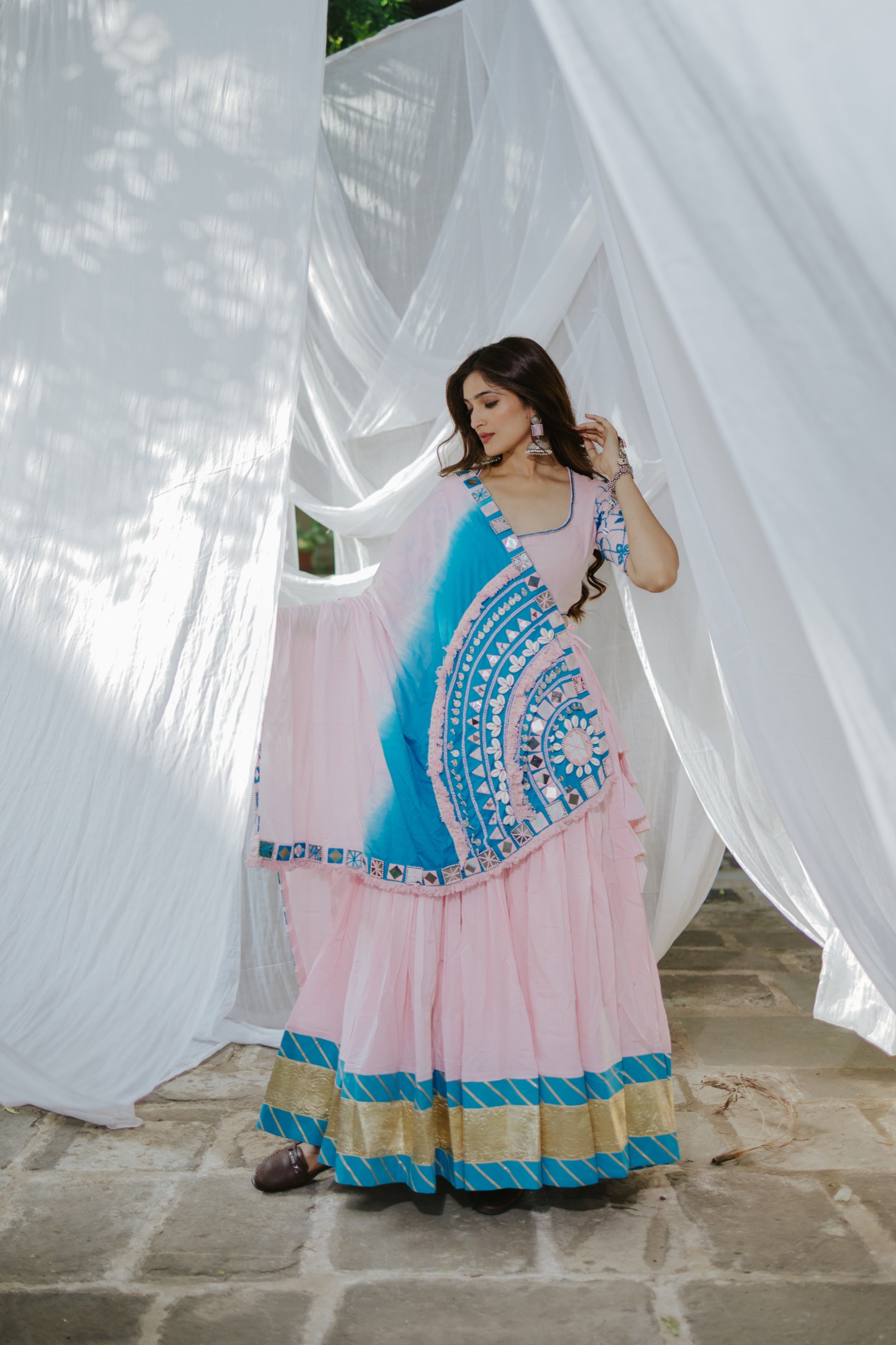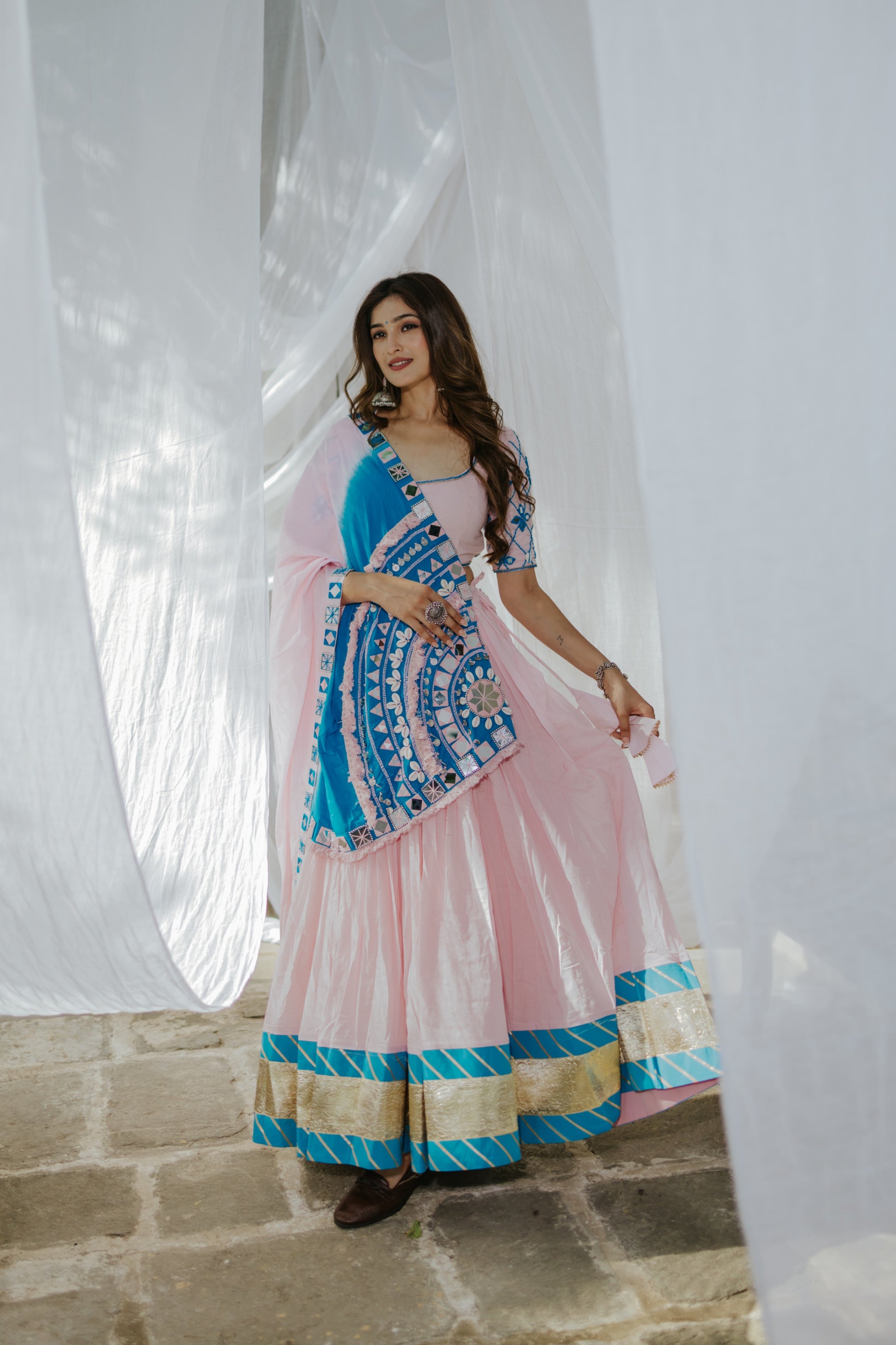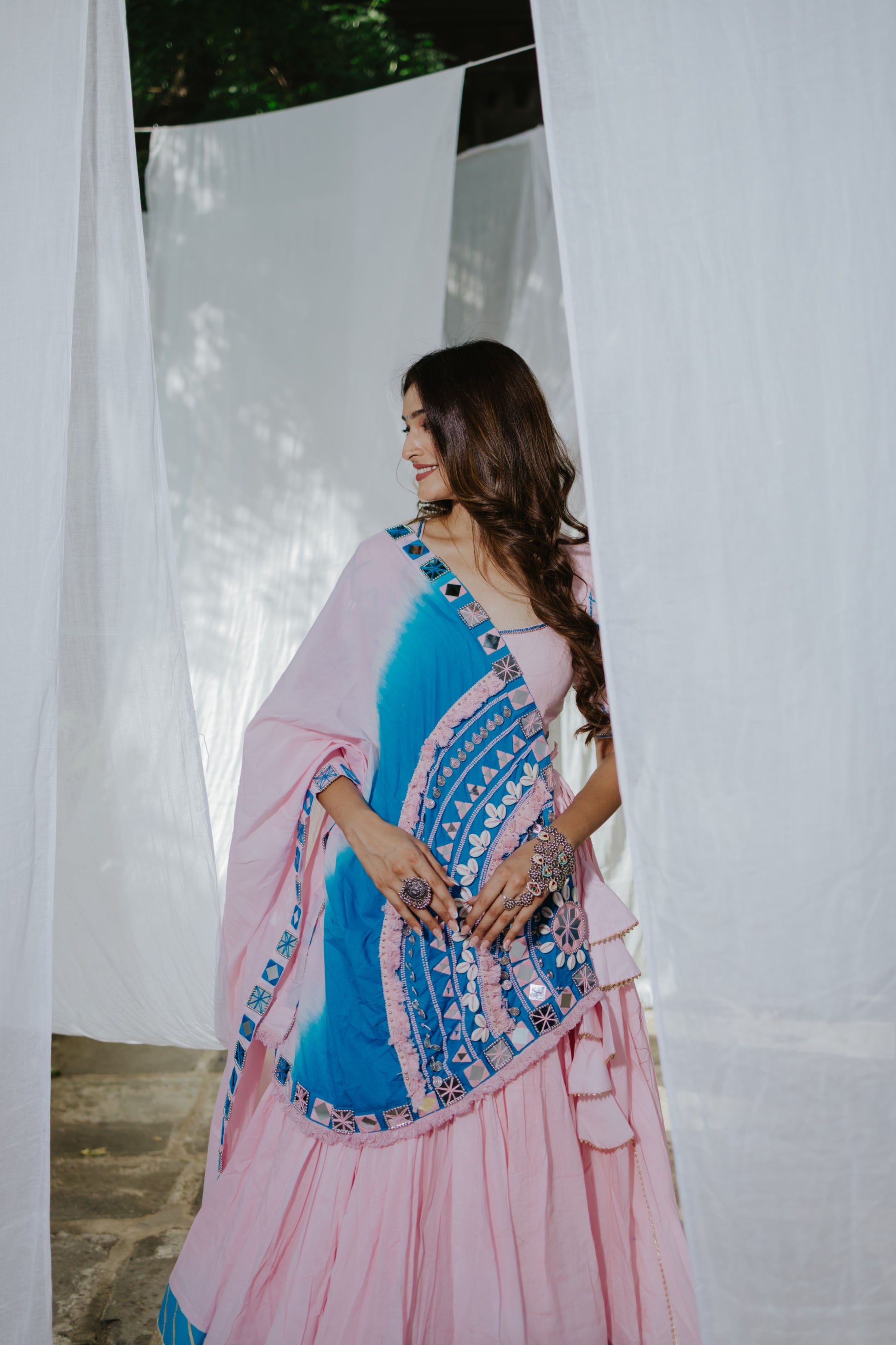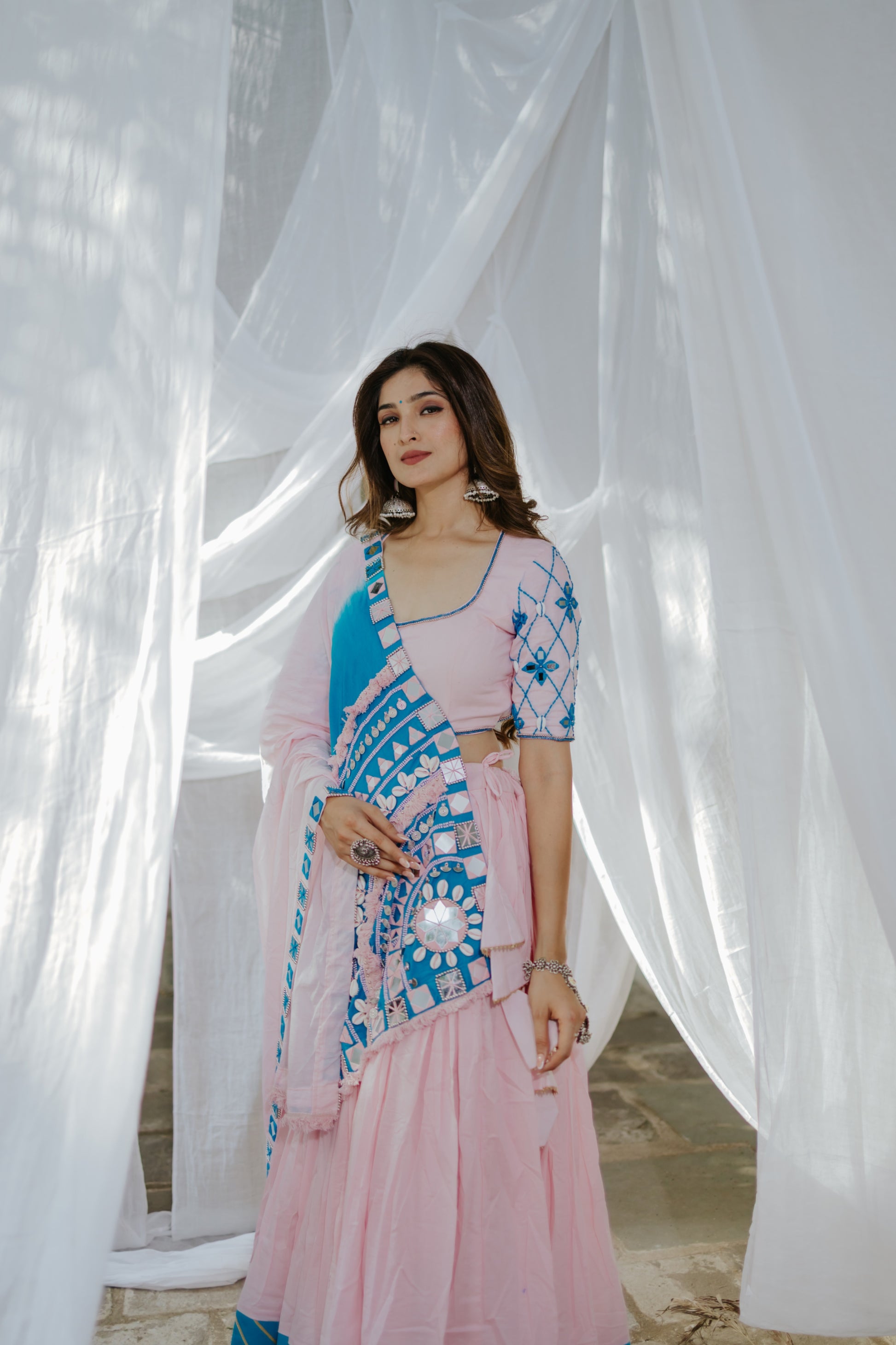 Exclusive Navratri 2025 Boho Mirror Magic – Pink & Blue Handcrafted Chaniya Choli - Raas