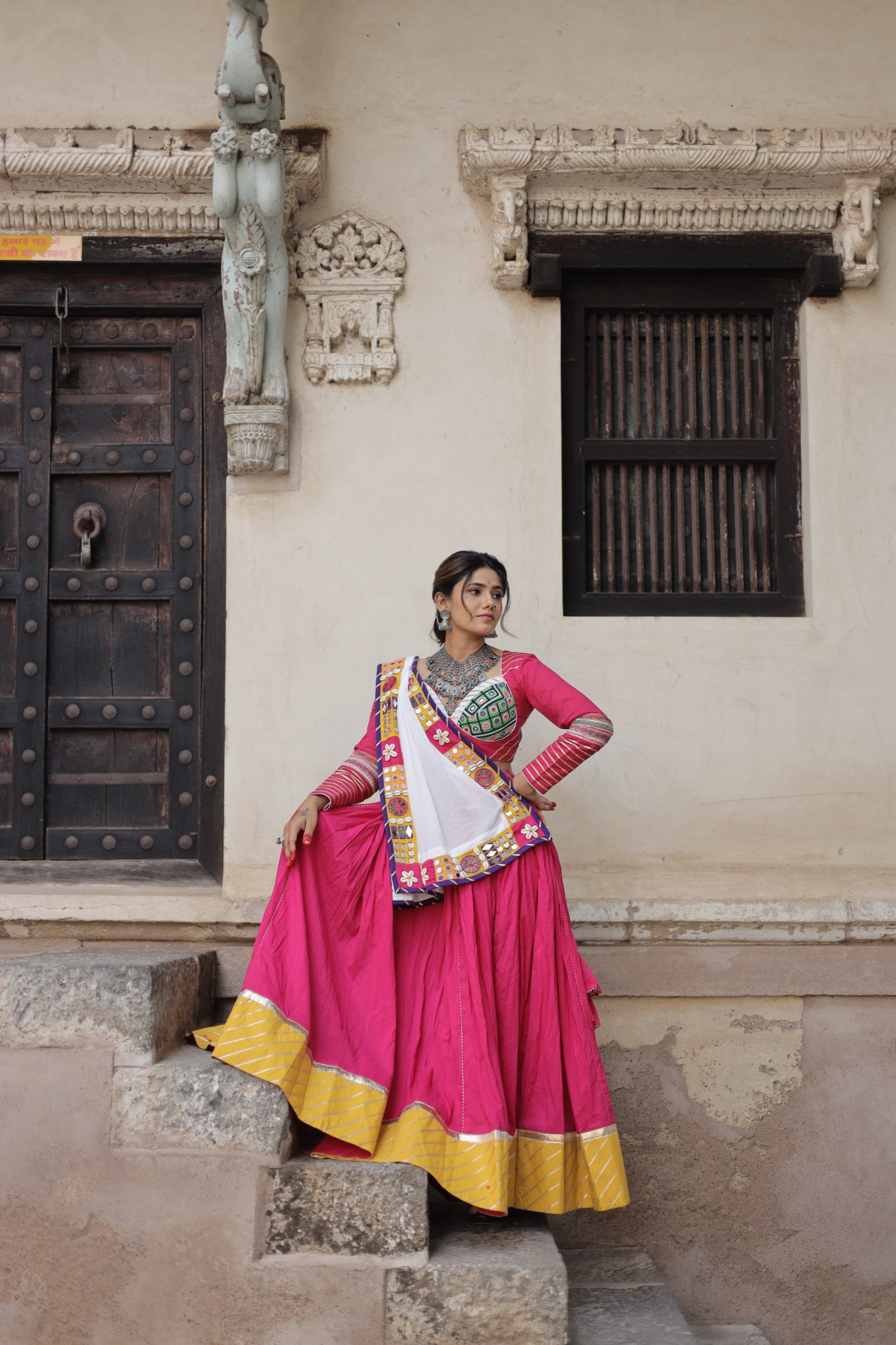 Kutch Heritage Pink Navratri Lehenga Set with Handcrafted Statement white Dupatta - Raas2025