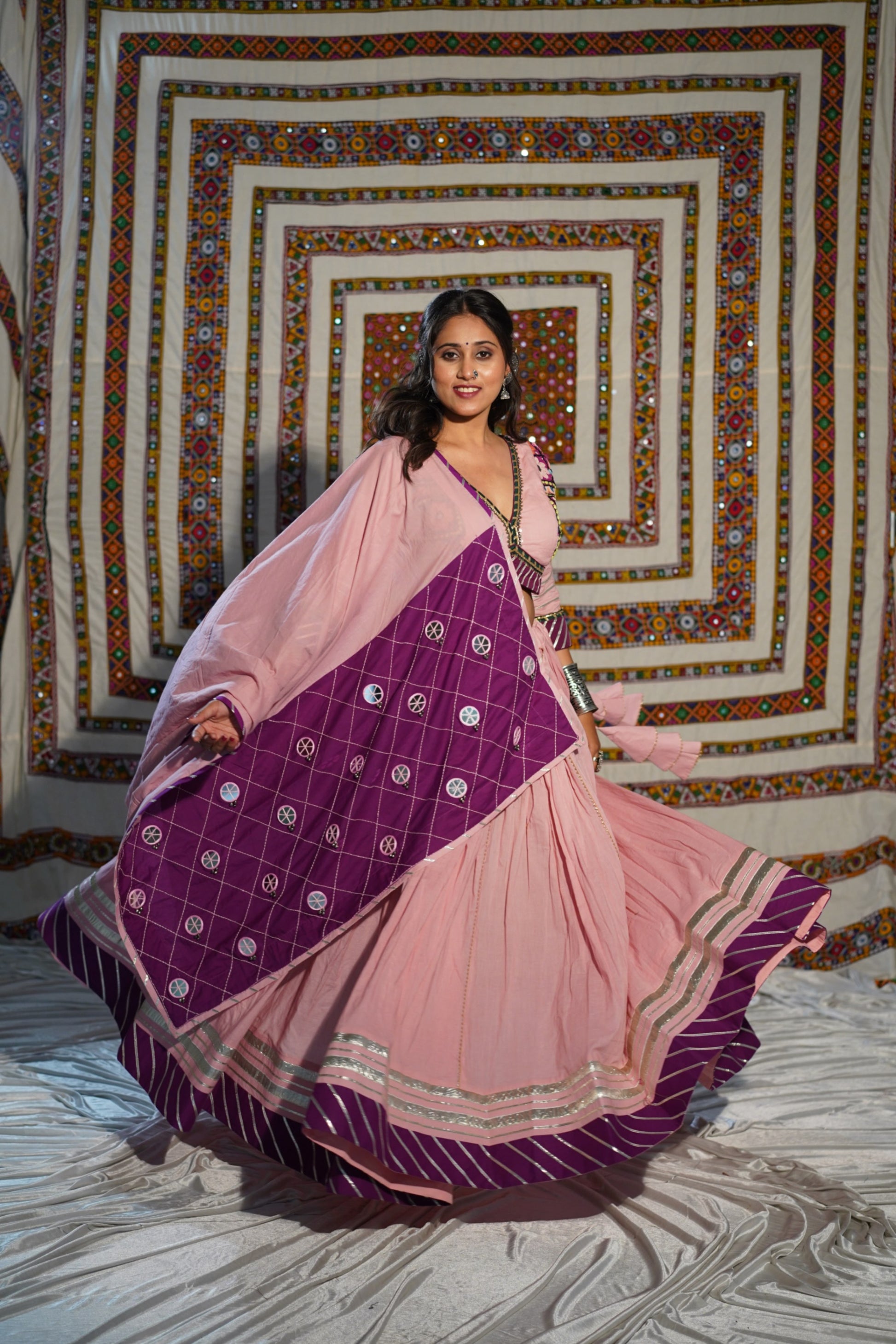 Pink & Wine Kutchi Navratri Chaniya Choli – Heritage Mirror Work | 2025 Raas Collection