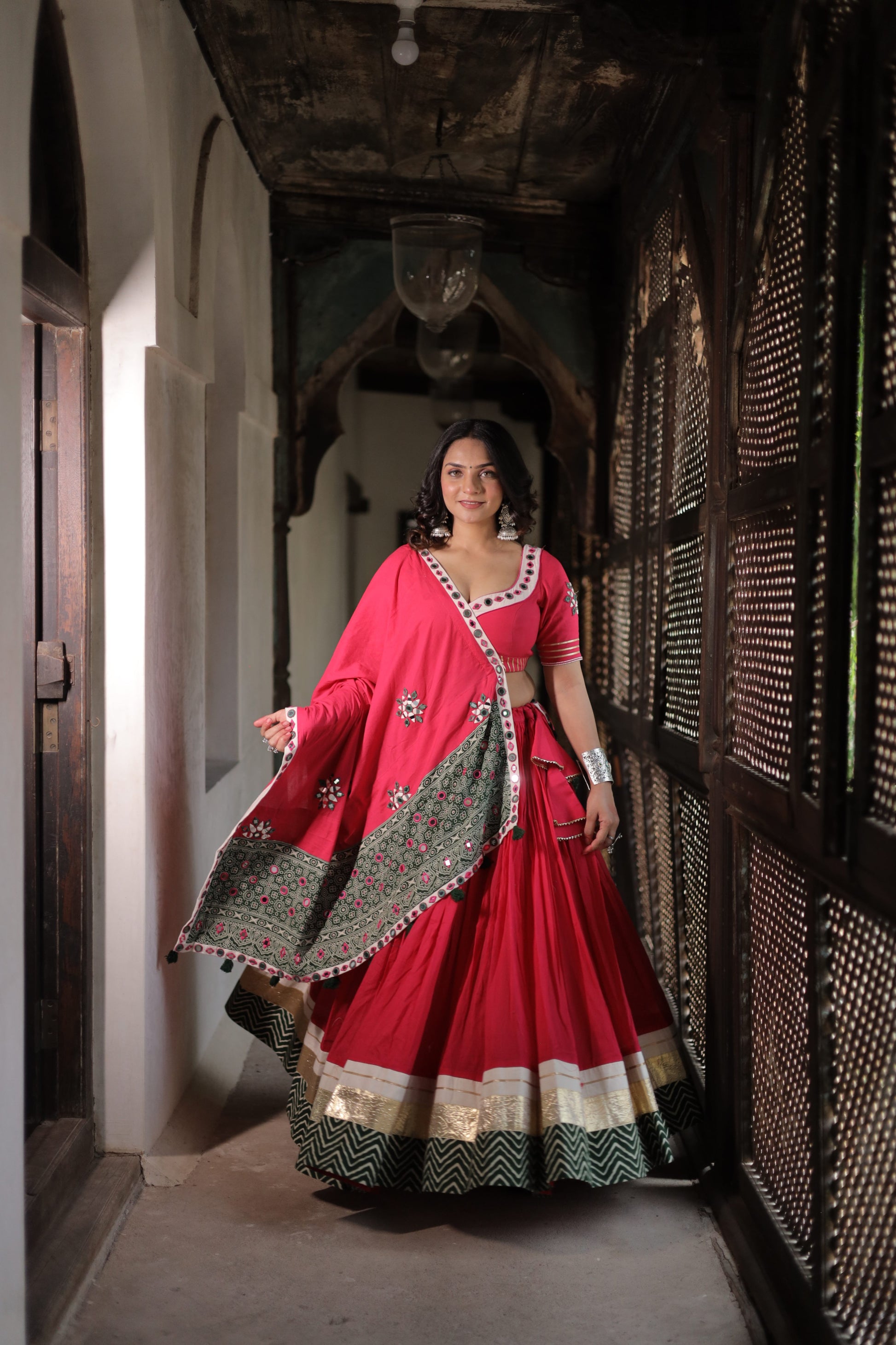 Rani Pink Patola Chaniya Choli Set with Mirror Work – Glamgirl Navratri Edition